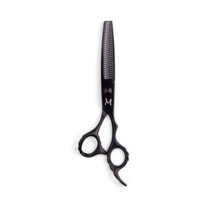 The elegant design of the Matsui Ergo Diamond Matte Black scissors features handles and premium steel that work together to create a lightweight feel, reducing wrist strain and minimizing the risk of RSI or carpal tunnel symptoms. These scissors are precision-engineered with a unique blade angle to ensure hair stays on the tips for smooth, effortless cutting. This design also keeps the blades feeling sharper for longer, making every cut a pleasure.