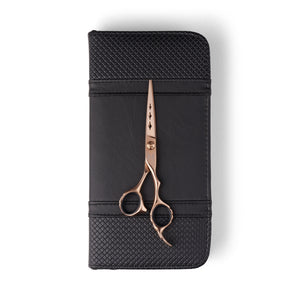 The elegant design of the Matsui Ergo Diamond Rose Gold scissors features handles and premium steel that work together to create a lightweight feel, reducing wrist strain and minimizing the risk of RSI or carpal tunnel symptoms. These scissors are precision-engineered with a unique blade angle to ensure hair stays on the tips for smooth, effortless cutting. This design also keeps the blades feeling sharper for longer, making every cut a pleasure.