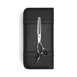 The elegant design of the Matsui Chompa 14 Tooth Offset scissors features handles and premium steel that work together to create a lightweight feel, reducing wrist strain and minimizing the risk of RSI or carpal tunnel symptoms. These scissors are precision-engineered with a unique blade angle to ensure hair stays on the tips for smooth, effortless cutting. This design also keeps the blades feeling sharper for longer, making every cut a pleasure.