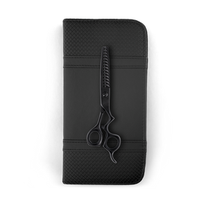 The elegant design of the Matsui Matte Black Classic Ergo Support scissors features handles and premium steel that work together to create a lightweight feel, reducing wrist strain and minimizing the risk of RSI or carpal tunnel symptoms. These scissors are precision-engineered with a unique blade angle to ensure hair stays on the tips for smooth, effortless cutting. This design also keeps the blades feeling sharper for longer, making every cut a pleasure.