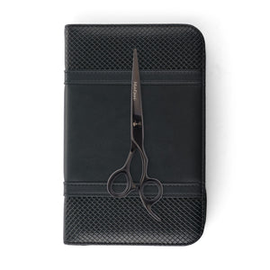 The elegant design of the Matsui Lightweight Classic Matte Black Offset scissors features handles and premium steel that work together to create a lightweight feel, reducing wrist strain and minimizing the risk of RSI or carpal tunnel symptoms. These scissors are precision-engineered with a unique blade angle to ensure hair stays on the tips for smooth, effortless cutting. This design also keeps the blades feeling sharper for longer, making every cut a pleasure.