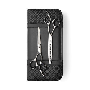 The Matsui Aichei Mountain Offset scissors are thoughtfully designed with ergonomic offset handles that naturally position your thumb for maximum comfort. These handles are crafted to suit most hand shapes and sizes, ensuring that 90% of stylists find them incredibly comfortable to use.