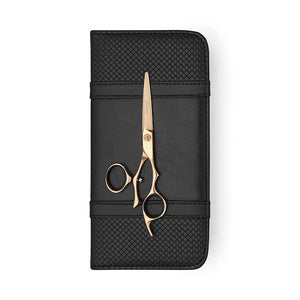 The elegant design of the Matsui Rose Gold Swivel scissors features handles and premium steel that work together to create a lightweight feel, reducing wrist strain and minimizing the risk of RSI or carpal tunnel symptoms. These scissors are precision-engineered with a unique blade angle to ensure hair stays on the tips for smooth, effortless cutting. This design also keeps the blades feeling sharper for longer, making every cut a pleasure.